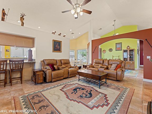 Close to everything, plus mountain views! Single-story living offers ease and convenience in this classic 4-bedroom, 2.5-bathroom single level custom home, which is found in the Santa Fe Vistas community. The home is within a pedestrian range of town center and Marilyn Park, and convenient to shopping and dining options. Exteriors include inviting patio and an enclosed back porch. Across the threshold, nice touches embrace you with an open floor plan and vaulted ceilings. Stylish kitchen charms with the simmer of possibilities. The serene primary bedroom includes two walk-in closets and ensuite step-in shower, tub, and jetted whirlpool. The other three bedrooms, situated along the winding path of the main hallway are unique and designed with plenty of wardrobe storage. Attached two-car garage. This home is a blank canvas for your lifestyle and memories!