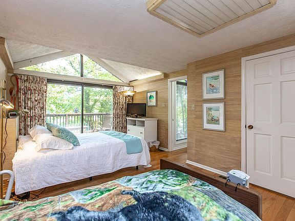 Oh...the memories that can be made at the lake! They are priceless! Days in the water...whether it is boating, skiing, jetskiing, kayaking, or soaking up the sun....this one checks all the boxes. Your backyard water oasis is perfect for your boat and other watercrafts! The history of this home goes back to the early days of Chimney Rock....those early days as a fishing camp with small cabins! The original cabin adds to the charm and uniqueness of this home! Two additions have been added over the years to both ends of the home! The Kitchen, Dining Room, and Family Room offer lots of windows and beautiful views of the lake. Primary ensuite, 2 bedrooms, and 2 additional full baths, and laundry/pantry room are all accessible on the main level. The second level offers a 4th bedroom with a screened in porch and balcony! Additional room below houses a Sauna and Hot Tub with fantastic views of the lake! Numerous outdoor areas are available for all of your entertaining needs and include a Patio area with firepit, and a Custom Cabin type Studio/Office/Man Cave that leads to your private dock. Call today to check out this LAKEFRONT property and the LAKE lifestyle