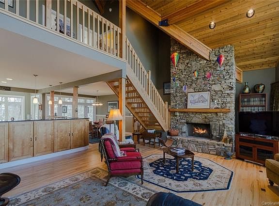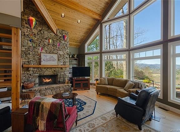 Stunning views from this post and beam, Lindal Cedar home just 3 miles from downtown Brevard. Impeccably maintained with updated kitchen, newer roof and 2-story great room with views of the valley below and to the famed Blue Ridge Parkway. You'll also find a wood burning, stone fireplace, custom built-in cabinetry, beautiful cedar beams, wall of windows and open floor plan perfect for entertaining. There is also a sunroom and rear deck overlooking woodsy setting.