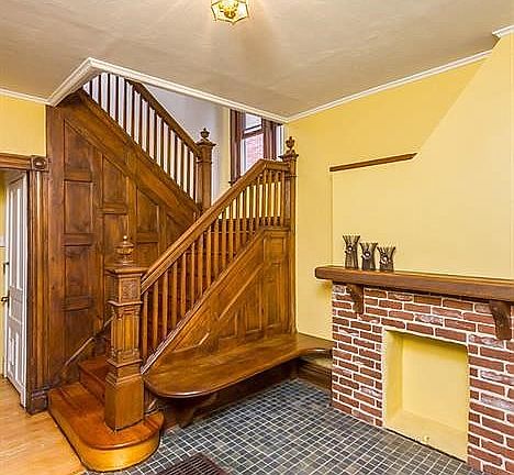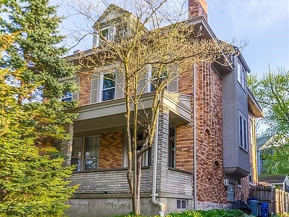 Welcome to this lovely Victorian home with large rooms, updated bathroom, and ample storage. You'll know you are home the moment you step into the foyer with the original leaded glass, decorative fireplace, built in benches and preserved woodwork. The living and dining rooms can be divided by the working pocket doors. Upstairs the master bedroom has a separate dressing room area with a substantial closet. Two more bedrooms are located on the second floor, and the third floor possesses a fourth bedroom and a den that are heated with electric baseboard heaters. Relax and take in the day from your large front porch. Enjoy the ease of a carefree backyard area with its flagstone courtyard complete with fire pit and pergola, and bordered by perennial gardens. Perfect for summer entertaining! Additionally, you'll never be scraping your windshield before work again because you'll have a 2 car garage. There is something to love about this house in all seasons. Make it yours today!