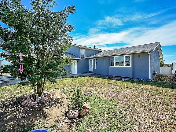 Welcome to your new home in the heart of Pueblo West! This charming tri-level residence offers a perfect blend of comfort and functionality, situated on a generous 1.03-acre lot. Take in breathtaking views of the stunning Sangre de Cristo Mountains from the large concrete patio—perfect for outdoor entertaining or simply relaxing. The main level offers a large living room with vaulted ceilings, a formal dining room, spacious kitchen with a pantry and a separate dining area with a walk out to your large concrete patio. Updated wood laminate flooring throughout, recessed lighting and newer paint enhances the home's modern appeal. Enjoy a newer central air conditioning system, ensuring a comfortable climate year-round. Upstairs you'll find a primary bedroom with an adjoining full bath with dual sinks and walk in closet, two additional bedrooms and a second full bathroom. The lower level is a versatile space featuring a large family room with built in bookshelves, laundry room, a 4th bedroom or office and walkout to the garage. (The lower level is plumbed for a third bathroom, giving you the flexibility to add even more convenience to your living arrangements.) The home also features a stucco exterior and vinyl windows, providing both energy efficiency and a sleek look. The 2-car attached garage offers ample storage and work space, while RV/toy parking is easily available for your adventurous side. Enjoy the convenience of being located a short 20 minutes from the Pueblo Reservoir