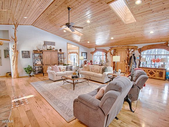 Looking for your perfect hide-a-way in this busy market? Look no further! This gorgeous home on 2 acres (2 lots) in theheart of Pinetop is a true Unicorn! This home gives you the privacy you seek, while still being among the tall pines in ahighly desirable neighborhood in Pinetop. The home was built by a premier builder who spared no expense at making thehome unique and building with quality in mind. Throughout the home, you will see custom touches such as juniper windowcasings.