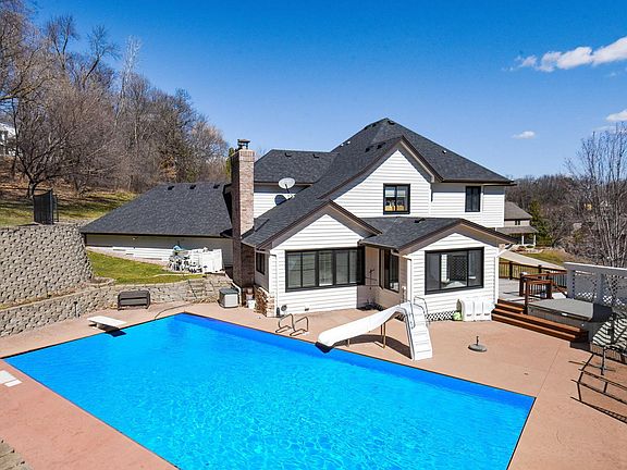 Former Tony Eiden Parade of Homes Model! This stately two story walk out is located in desirable Fox Chase. Enjoy beautiful views from the four-season porch or the enlarge deck overlooking the pool area. Main level study, four bedrooms up (each with access to bathroom) and open floor plan with bright spaces. Newer windows, engineered wood flooring on main level, lighting, furnace and air conditioner. In-ground heated pool with electronic cover.