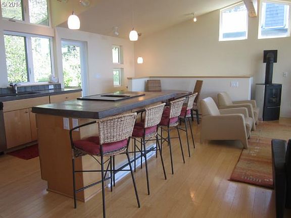 Calling all Happy Campers! Great house just steps to the beach, with wonderful bay and ocean views and priced right! 2 bedrooms, 2 baths and ''bunk room''. Wide open living upstairs with vaulted ceilings, wood floors and full bath. Custom kitchen with concrete counters. 2 decks and wall of windows to capture the glorious close-up views. Ample parking for cars and boats. The perfect beach retreat!