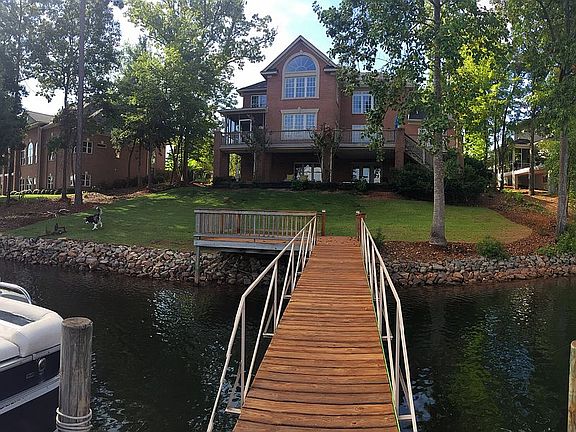 All Brick custom built 5000 square foot home on 129' Lake Murray waterfront. This house is just awesome. 5 beds, 4 bath, Movie Room, Game room / Gym, Sauna, Wetbar, Office, huge master bedroom, closets and bathroom. Hang out in the huge kitchen with lake views and dining and sitting areas. Enjoy the high end stainless steel appliances and gas cooktop. All , marble tile, Brazilian cherry and red oak hardwood floors. Soaring 20' ceilings, heavy crown molding throughout entire house, finished garage with work bench and generator hookup, upstairs screened in porch, large concrete Q-decking patio overlooking lake, and expansive downstairs covered porch also lake-side. Walk out to the park like backyard down to the private dock with sitting area and enjoy the western view sunsets over the water.