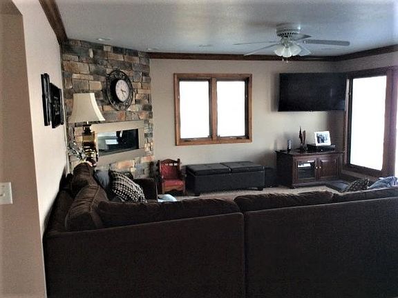A Slice of Heaven. This unique lakefront property is located on a point of Big Turkey Lake, an all sports lake. The property has 180 ft of lakefront and 140 ft of channel front lake access. With overlooking views to the Northeast, you will be able to enjoy beautiful sunrises as you start each day. This 6 bedroom 3.5 bathrooms has been well maintained. It was remodeled throughout completely in 2009 and has amenities such as granite counter tops, indoor/outdoor surround sound, custom tile bathrooms, 2 HVAC Units-one per floor, 2 tankless Hot Water heaters, stone fire pit and patio, roll in/out dock system, and sand/gravel swim beach area. See amenities sheet for a complete list of all the amenities this property has to offer. Plenty of parking and all the bedrooms are very spacious and will accomodate a large number of over night guests comfortably. Start making Lake memories today at this one of kind lake property. The property has had a Home Inspection available for review to qualified buyers. All furnishings are available for purchase handled seperately from purchasing the property.