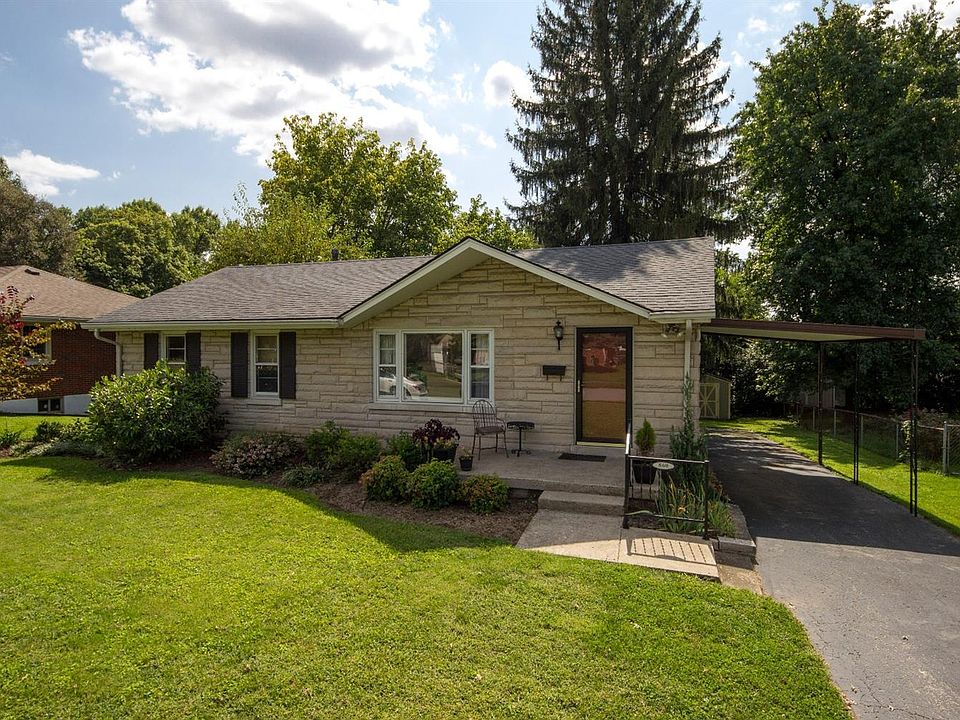 Fabulous Bedford Stone ranch on a full unfinished walk out basement. 3 bdrms/1 bath and loads of potential. Beautifully refinished hardwood floors, fresh paint and updated kitchen and bath. Lovely fully fenced large backyard for your fall entertaining with storage shed Quiet street in convenient location to downtown, schools, shopping, and restaurants.