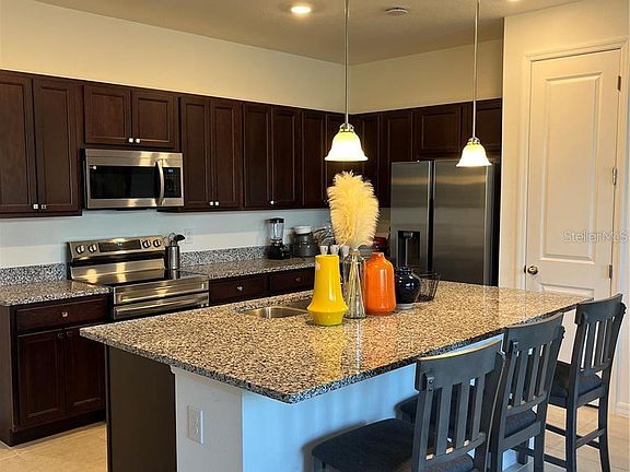 FULLY FURNISHED EXCLUSIVE RENTAL! Fabulously decorated 3 bedroom and 2/1 bathroom with 1 car garage, with open floor plan. Tile flooring throughout the first floor. Enjoy amenities with a swim in the resort-style pool, splash pad area, fitness center, mini golf course and beach volleyball court. This home is conveniently located near shopping, grocery stores, Posner Park, Champions Gate Village and Walt Disney World.