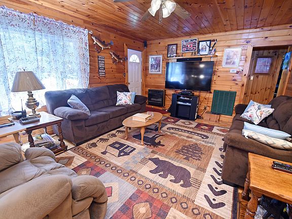 Charming Ranch Cottage on UNRESTRICTED .89 acres. 3BR/1BA OR make it 3BR/2BA by converting storage closet back to a bathrm. Updated bath features jetted tub + separate shower. So many upgrades! Wood T&G + wallboard interior, HVAC 2017 (plus 2 wall heaters), H2O Htr 2014, Metal Roof 2019, 33'x52 deep pool w/small deck + screened pool house. Pool is fed by separate well. Multiple outbuildings. 2 Car enclosed Carport has Hot tub, Fireplace + great entertaining area. Lots of storage. Large Mudroom. Circular Drive, Plenty of parking for RV, boat, multiple vehicles and toys. Carport screens open to accommodate 2 vehicles. Home on City water + 3BR septic. Conveniently located between McCaysville GA and Blue Ridge GA. Close to Merciers Orchard and other attractions: Ocoee Whitewater rafting, Downtown Blue Ridge, Blue Ridge Scenic Railroad, lots of shopping and restaurants.