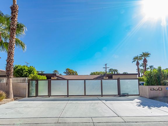 The condo has been completely remodeled down to the studs, including a custom kitchen opening to the living room and dining room. The kitchen is fully stocked, with a drawer microwave and a pantry. The living room has a 60 inch TV and double reclining sofa and swivel, reclining rocker chair. The bedroom has a 40 inch TV. Both TVs include NetFlix and approximately 20 local channels (including ABC, CBS, NBC, Sci-fi, PBS, KCET, NHK). The bed is a split king, adjustable Leggett and Platt with vibrator. Try to find that in another Palm Springs condo! The custom bedroom closet has a built-in dresser, and there is a desk for your convenience. The upper shade in the bedroom transit window is on remote control, as is the overhead light fixture. The extended sliding door to the patio has adjustable blinds inside to control the sunlight for those who like a very dark room.
