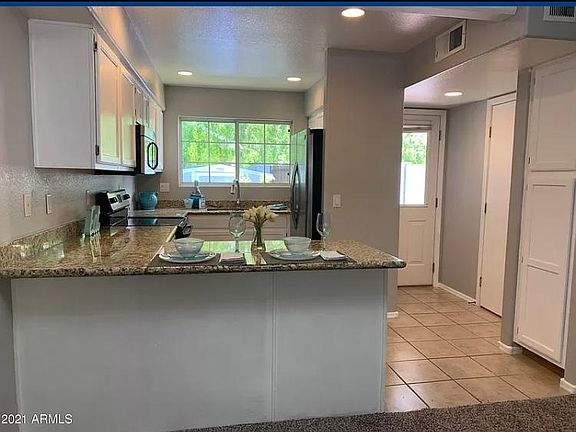 Beautiful and modern home in New Castle neighborhood in Chandler. Kitchen is very spacious and features granite countertops, stainless steel appliances and has a large window overlooking the beautiful courtyard. Large living room/dinning room area. New paint, new carpet, updated light fixtures. 2 big bedrooms upstairs, both en-suite. Good size laundry room. The beautiful patio is perfect for relaxing. 2 carport parking spaces. Community has 2 heated pools and spas and beautiful mature landscaping. All this in a great Chandler location Unit # 1009