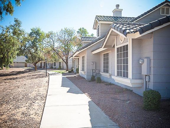 Fall in love with this absolutely charming 2 bedroom/ 2 bathroom home on a corner lot. Enter and find stylish flooring, vaulted ceilings, and a cozy fireplace, just in time for cool evenings. The kitchen boasts plenty of counter and cabinet space, black on black appliances including refrigerator, range/oven, dishwasher, and built in microwave. Stackable washer/dryer included. The master suite features an attached bath and large closet. Enjoy a private patio and yard area outside with gate access. This great community offers a large pool/ spa plus plenty of shade trees and a greenbelt area. Conveniently located near restaurants, shopping, and easy access to the loop 202. You will not want to miss! Contact us to view this home today. Price: $1150 rent with 1.5% tax + 1% admin fee. $1150 refundable security deposit. $200 non refundable cleaning fee. $300 refundable pet deposit with lessor approval. Earnest deposit $500. Application $35 per adult.