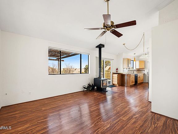 Welcome to your private cottage set on 3.3 fully usable acres, framed by lush trees and expansive views of Granite Mountain. Whether you dream of gardening, keeping animals, or simply embracing the rhythm of nature, this property delivers. Inside, you'll find a bright kitchen with custom wood cabinetry and butcher block counters, a cozy wood stove for chilly evenings, and warm wood floors that flow throughout. A spacious Arizona room and oversized deck invite outdoor living year-round. Horse property with room to roam — all tucked away in a setting that feels worlds apart from the noise, yet just a short drive to amenities. Ideal for those seeking quiet, privacy, and a lifestyle rooted in simplicity and connection to the land.