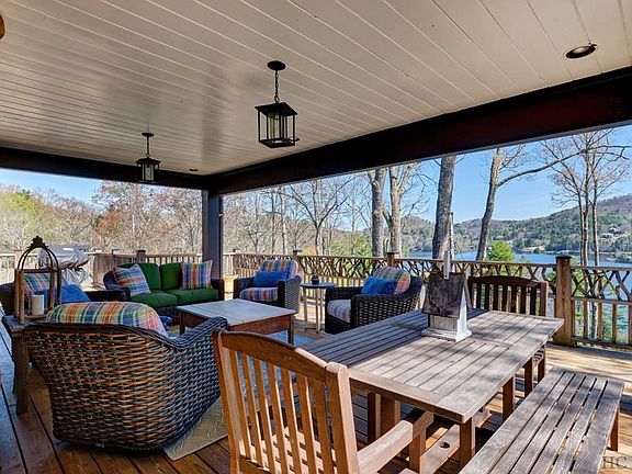 Gorgeous sought-after Trillium Links & Lake Club home with spectacular views of Lake Glenville and the surrounding mountains!! You won't want to miss this first time on the market LAKE VIEW HOME a short distance to the Lake Club and Marina where you can dine, listen to music and rent a motorboat or kayak. Upon entering the home, you notice the open layout and spacious feel with its vaulted ceilings and floor-to-ceiling windows giving incredible whole house lake and mountain views on the main living areas and master en suite. Stroll outside onto the massive deck area with covered and open space, perfect for entertaining. There is even a private niche gazebo area for the more intimate gatherings around the wood-burning fireplace. The lower level of the home features a Kitchenette, large family room, two bedrooms, two full bathrooms and a walkout covered deck all of which make guests feel they have their very own private oasis. Membership to the Trillium Links & Lake Club IS NOT REQUIRED but for those interested in joining, it is available for an additional fee. Joining affords you the Country Club Lifestyle with AMAZING amenities offered including: golf, tennis, croquet, fitness center, pool, lake club, clubhouse, dining experiences and more. The home comes furnished with a few exceptions and has fiber optic installed. It also has a proven track record of making a great rental and renters can have access to everything the OWNER OF A CLUB MEMBERSHIP enjoys with a small daily amenity fee.