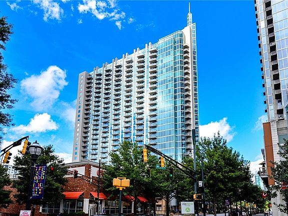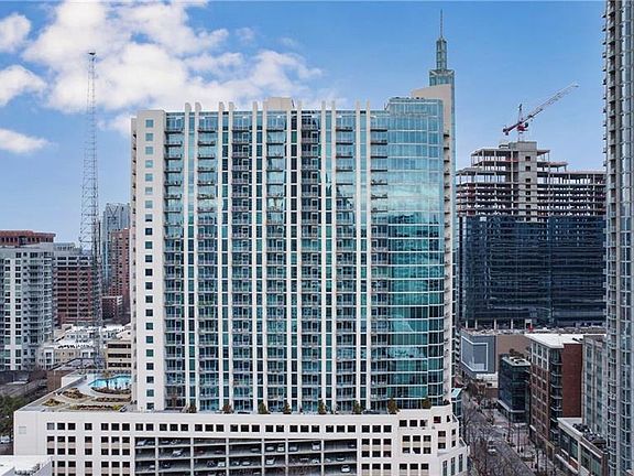 RARE FIND IN SPIRE - One Bedroom with TWO deeded parking spots (spot 124 and 25)! FRESH interior paint and NEW laminate flooring through-out. 10' concrete ceiling, upgraded taller baseboards, updated lighting package. Granite kitchen w/dining nook or ideal spot for home office. Spacious living room w/built-in bookcase has southern views of downtown. Master bedroom w/black-out drapes and custom walk-in closet. Spacious tile bath has access from master suite and living area. NEW HVAC system installed in 2020. Spire offers 24 hour concierge, secure gated parking, two-story clubhouse w/bar area, media room, pool table, work stations, cartering kitchen, fitness center, pool and beautfiul outdoor seating areas and grilling area. Walk to everything in Midtown, Piedmont Park, The Fox, Georgia Tech, restaurants, shopping and more!