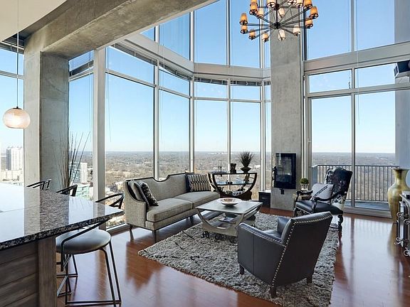 PENTHOUSE living at it's finest! Enjoy a 180 degree view of the Midtown North, East and West skylines then onward to Buckhead. Incredible floor-to-ceiling windows in every room, vaulted 25 ft celings in the living room, two (2) balconies, separate office that could be expanded, lovely finishes, large kitchen, huge closets and bathrooms and great storage. No other condo like it in the city for this price. Easy appt to show. Call TODAY!