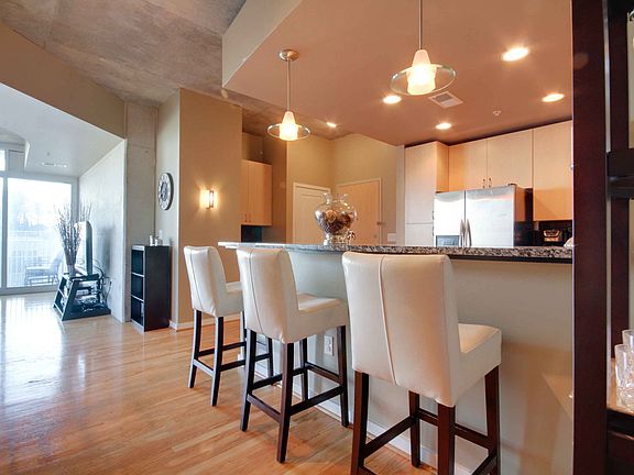 Enjoy intown living at its finest in this stunning 11th floor end unit in Spire! Floor to ceiling windows allows for tons of natural light and wonderful Midtown views. Spacious living area with hardwood floors, and walk-out balcony overlooking Peachtree St. and 7th corner. Seller will put new hardwoods prior closing and carpets will be deep cleaned. Sleek kitchen with stainless steel appliances, granite countertops with breakfast bar, planning deck, and tons of cabinets space. Great closets in bedrooms. Two parking spots. Incredible amenities.