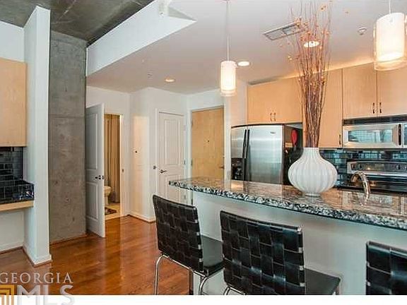 Large 2BR/2BA condo w/unbelievable unobstructed views of Midtown & Downtown. Residence offers roommate floorplan w/10' ceilings, floor-to-ceiling windows, gleaming hardwoods in main living area & new carpet in bedrms. Kitchen boasts granite counters, maple cabinets & s/s appliances. Unit also features treated exposed concrete, custom lighting/window treatments & custom closet system. Incredible building amenities include 24 hour concierge, pool, fitness center, cardio room & club room. Walk to MARTA, Piedmont Park & an abundance of shops, restaurants & nightlife!