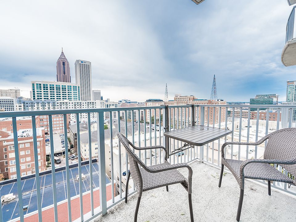 InTown Living at its finest in this luxurious newly renovated condo with expansive City views! New Kitchen features custom cabinetry, granite counters, SS appliances, oversized island/breakfast bar and a built-in Wine Cooler, too. Living Room filled with natural light... features wall of windows open to large Balcony..perfect spot for that early morning coffee. Spacious private Bedroom with large closet, window and tiled Bath, built-in office workspace off kitchen, custom lighting, ceiling fans and gorgeous new Hardwood Floors. Fabulous amenities at Spire include 24 hour Concierge, classy Clubroom with kitchen, bar, pool table and theater room, business center, fitness center with cardio, weight and yoga room, a heated salt-water pool and outdoor areas with gardens and gas grills. Short walk to Piedmont Park, Fox Theater, shopping and restaurants.