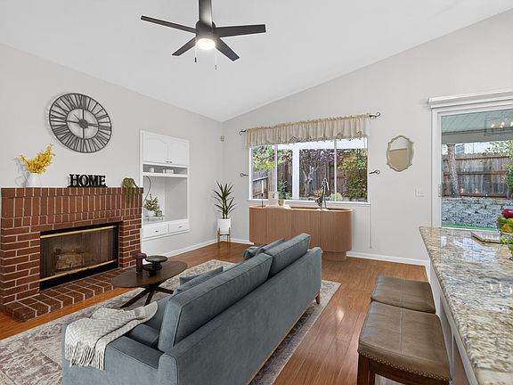 RARE single story charming 3-bedroom, 2-bathroom home nestled in Highly Desirable Broadstone Neighborhood. Upgrade with 2025 Brand New Recess Light in living room, 2025 Brand New designer Ceiling fan in family room and master bedroom, 2025 designer chandelier in Kitchen breakfast nook, 2024 Hot Water Heater, 2022 Wifi remote controlled grage door and opener, 2023 Turf and rock in backyard. Laminate Floors throughout. This beautiful home offers an inviting and bright atmosphere throughout. The open-concept family room and kitchen boast vaulted ceilings, creating a sense of grandeur and spaciousness. The abundance of natural light streaming through large windows enhances the airy feel, making this home a true haven. Open kitchen with Granite counter tops and back splash. Master suite with 2 closets, dual sink and shower stall. Low maintenance Landscaped back yard with Patio cover. Walking distance to shopping, restaurants, school, walking/ biking trails, playground, parks, Folsom Sports Complex. Closed to highway 50, Intel, Micron, Palladio, Folsom Lake College. NO HOA, NO Mello-Roos and low tax. (NHD report ready). Move In Ready!!!