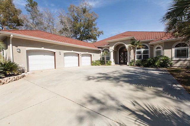 Beautiful luxurious waterfront estate near Fly Creek Marina. This open and airy style home boasts 4300+ sq ft living, teak floors, 3 car garage, 126 ft waterfront, boathouse w/boat lift, 2 decks & 900+ sq ft screened porch. Built acc to strict hurricane codes. Metal roof has lifetime warranty and is bolted to house. ICF Construction. Home has 12'-14' ceilings, 5 bedrooms + office, beautiful built in cabinets, commercial grade kitchen & gorgeous master suite. Two tankless hot water heaters.