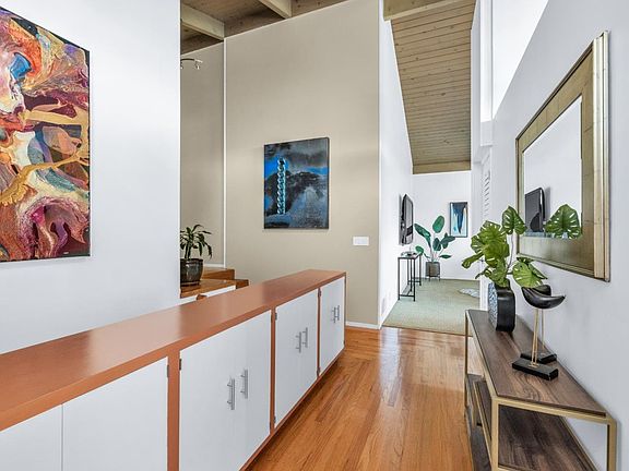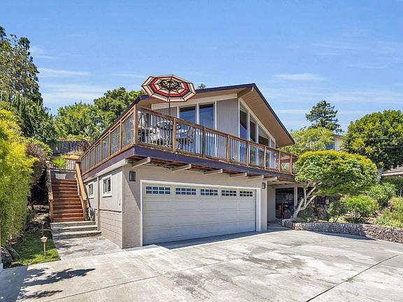 WORLD-CLASS vistas embrace this stunning Mid-Century Modern home. Artfully designed so the interiors enjoy an immediate connection to the outdoors and expansive Bay views. Soaring ceilings and walls of windows and doors ensure that you have access to the wrap-around deck and beautifully landscape property. An oasis has been created with level lawn, natural stone walls, a deck with a pergola covered hot-tub, space to entertain and BBQ, lush plantings that provide color, fragrance, fruit, and veggies - all finished off with a sparkling swimming pool featuring Turkish limestone decking. The home is convenient to shopping, restaurants and Twin Pines Park that offers summer concerts. Commuters will enjoy the mid-peninsula location and ease of access to HWY 101 and 280. This is truly a one of a kind home that allows you to feel you're always on vacation.