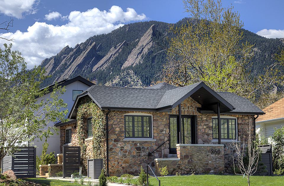 Explore this entire home with the interactive 3D tour! Click on View Virtual Tour below. - Gorgeous brand new home in central Boulder w/stunning Flatirons views! Charming 1940 bungalow, sleek & modern inside! Home backs to Mattie Dean open space/treed park.Easy walk to Flatirons Elementary and downtown! No detail left unturned. Light-filled home with open floor plan, soaring ceilings in living/dining, White Quartz island,walnut flooring, Wolf range, living & master see-through indoor/outdoor fireplaces, artsy light fixtures,photovoltaic solar array, tankless HO2,2-car detached garage.