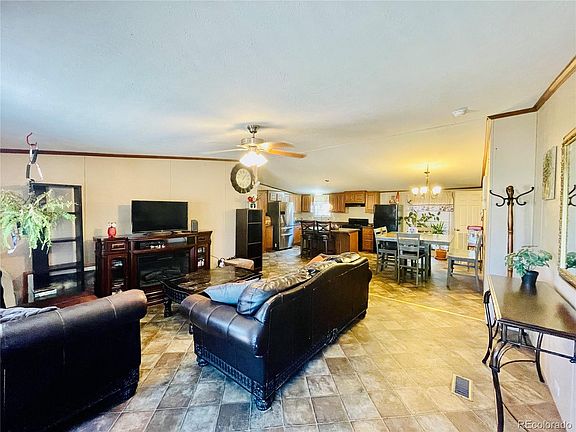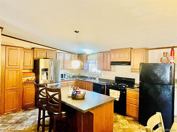 WONDERFUL NEWER 2015 Extra Large OPEN CONCEPT 4 bedroom 2 bath home with TONS of space and storage. You will be amazed by this beautiful Kitchen that features all stainless steel appliances, large island and lots of cabinet storage. Large master bedroom that features a 5 piece master bath that includes a garden tub, separate shower and private commode room. 3 very spacious additional bedrooms, a small separate computer desk area, roomy laundry room that includes a washer and dryer. Home is situated on the perimeter of the community and backs up to the Arapahoe Ridge Elementary School with a walk through gate in the fence for your convenience to access the school. This updated home has central a/c as well as an oversized shed and a private back yard space. So much home value for such an INCREDIBLE price. You are buying the home only in a land leased community with lot rent of $1024 per month. All adults and dogs living in the home MUST be approved to live in the community. Community requires minimum credit score of 650+. Please see listing agent for specialized lenders if financing is needed.