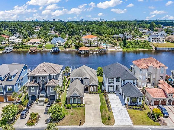Property is now under contract...no open house Sunday July 7th. Immaculate four-bedroom four-and-a-half-bathroom Mediterranean style home located directly on the Intracoastal Waterway in Carolina Waterway Plantation. Take in the breathtaking waterway views while lounging in the infinity pool and hot tub, entertaining in the outdoor kitchen space, or simply relaxing on the expansive balcony off the living room area. This home includes an oversized three car garage, a recently installed elevator, gas fireplace, upgraded gas range, stainless steel appliances, custom cabinetry, porcelain tile, bamboo wood flooring, granite countertops, and 12’ ceilings. The master suite offers 2 large walk in closets and a spa like setting in the bathroom. The flex room on bottom level is equipped with a full bathroom, large stainless-steel fridge, tiled backsplash, and custom cabinetry. Carolina Waterway Plantation, a gated community located directly on the Intracoastal Waterway, offers amenities such as a clubhouse, resort-style pool, tennis court, a playground, boat/RV storage, and a private boat launch, all with low HOA fees. You are just a short drive from the beach, state parks, shopping, dining, and entertainment. Don’t miss out and schedule your private viewing today! Some photos in this listing have been virtually staged.