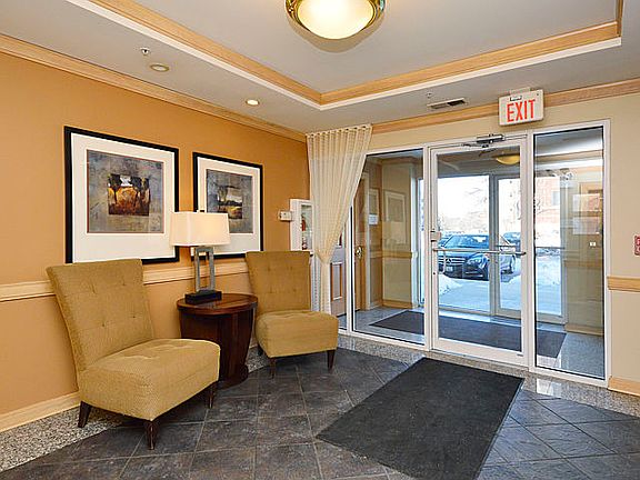 Bright beautiful condo in newer luxury development. Stunning treetop views of pond from balcony & every window! (Does NOT face Dundee.) Open kitchen w/granite counters & maple cabinetry. Stylish great room boasts 9'' ceilings, gas fireplace & recessed lights. Master bedroom has huge walk-in closet & private bath. 2nd bedroom, hall bath, many closets, in-unit laundry, storage & garage. Pets allowed too ~ A real find!