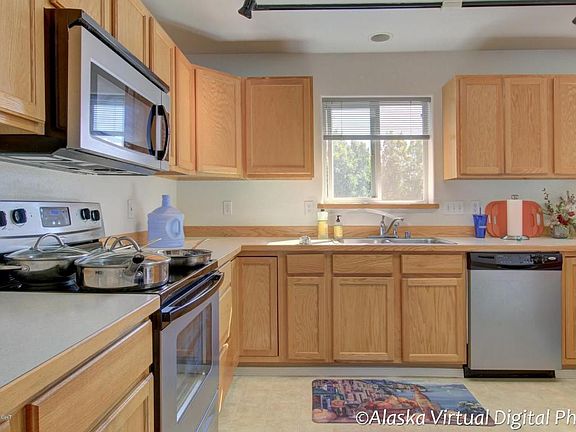 Welcome home! Enjoy the amazing mountain views while you relax in front of the fireplace upstairs or on the deck. Kitchen is large with lots of cabinets and counter space. Great floor plan for entertaining. Large bedrooms. One bedroom and bath on lower level. Light and bright. Back deck is peaceful and opens to the entire yard and buffer with school. Located on a cul-de-sac. Located off Lake Otis on a private quiet street. Tons of space to park your cars, RV and other Alaska Toys. Oversized long driveway. Enter into a quiet peaceful home that has living space upstairs and downstairs. Enjoy cooking in the large spacious kitchen with breakfast bar and dining area. Perfect size nook great for a small home office. Vaulted ceilings. Relax in front of the gas fireplace and gaze out at the magnificent views of the Alaska mountains. Upstairs deck with room for grilling. Downstairs find two bedrooms and bathroom plus family/gathering room. Laundry room with built in shelves and folding counter. Walk out to the back deck that spans the entire back of the house. Plenty of trees provide privacy. Trails within minutes. School playground just steps away. Easy access to Seward Highway, shopping and minutes to the Dimond Center. Located off Lake Otis on a private quiet street. Tons of space to park your cars, RV and other Alaska Toys. Oversized long driveway. Enter into a quiet peaceful home that has living space upstairs and downstairs. Enjoy cooking in the large spacious kitchen with breakfast bar and dining area. Perfect size nook great for a small home office. Vaulted ceilings. Relax in front of the gas fireplace and gaze out at the magnificent views of the Alaska mountains. Upstairs deck with room for grilling. Downstairs find two bedrooms and bathroom plus family/gathering room. Laundry room with built in shelves and folding counter. Walk out to the back deck that spans the entire back of the house. Plenty of trees provide privacy. Trails within minutes. School playground just steps away. Easy access to Seward Highway, shopping and minutes to the Dimond Center.
