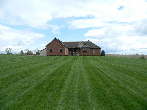 Custom built brick home with craftsman style finishes situated on 5 acres. Country life with city enmities. City water and sewer and Columbia gas heat. Top of the line everything. Granite counters, tons of cabinets and large pantry. Elite stainless steel appliance package. Hardwood floors throughout home with ceramic tile in the bathrooms and the 4 seasons room. The great room is open to both formal dining area and the kitchen. The great room has a fireplace with built in book cases. There is a large 1st floor laundry room located off the 3 car attached garage. There are 4 large bedrooms with one currently being used as an office. There are 2 tankless hot water tanks in the full basement. There is a patio off the florida room and a covered patio off the det bldg. 5 car off st parking