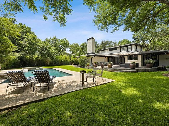 Beautifully updated Mid-Century Modern home set on a lush, private .75-acre lot, this sophisticated Bluffview home offers an exceptional lifestyle in one of Dallass most exclusive and sought-after neighborhoods. Tucked behind tall hedges with a deep front setback and a circular drive with parking for 10 plus cars, it feels worlds awayyet is just minutes from the Dallas North Tollway, I-35, 635, the Medical District, and some of the citys finest shopping and dining. Designed for both elegant entertaining and warm, casual living, the resort-style backyard is reminiscent of the Hamptons, with multiple patios, mature landscaping, a sparkling pool, and spa. Lawn care, landscaping, and pool service are all included in the rent. This 3-bedroom, 2.5-bath home features a flexible layout with multiple living areas, including a large formal living and dining room, a spacious family room, and a sleek European-style kitchen. The home is filled with natural light from many floor-to-ceiling windows showcasing the backyard and multiple sets of French doors that open to inviting outdoor patios. Hardwood floors run throughout, along with plantation shutters and tasteful finishes. The first-floor primary suite includes two closets, direct patio access, and a recently upgraded bathroom with dual sinks, a standalone soaking tub, and a separate shower. An elegant powder bath serves the main entertaining areas. Upstairs are two guest bedrooms that share a beautifully updated bath with a walk-in shower; window air conditioning units are provided to enhance cooling as needed. This is a rare opportunity to lease a private, peaceful, and beautifully maintained home in one of Dallass most established and desirable neighborhoods. 12-month lease required; 24-month preferred. Up to 2 pets allowed; $500 non-refundable pet fee per pet. Please see listing agent for details. Available for lease Aug 1. NO sublets, no guarantors 2025-10-17