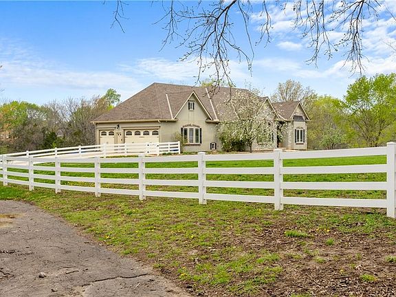 Welcome to your private oasis on 7 picturesque acres! This stunning 4 bedroom and 3.1 bath Reversed 1.5 story home offers a rare blend of privacy, functionality and location--with a KC address and Lee's Summit schools just minutes from Lee's Summit amenities including highway access, St. Lukes hospital, and shopping and restaurants. Inside you will find an open floor plan with souring ceilings, a chefs kitchen featuring an island and walk-in pantry. The main level primary suite boasts a spa like bath, walk in closet with laundry and access to the deck with tranquil views of the inground swimming pool and pond. There is a 2nd bedroom on the main level. The walkout lower level is built for entertaining with a wet bar, family room with a fireplace. There are 2 additional spacious bedrooms and an additional laundry hookup. If you are a car enthusiast or a hobbyist you will love the 5+garage spaces. Plus additional garages in the outbuilding. The inground swimming pool has a newer liner, an electric cover and new decking. The perfect spot for all of your summer gatherings.