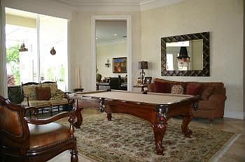 Immaculate true 4bd + den & 3 car garage on over an acre that looks out onto the lake. Saturnia laid on diag in living area, crown moldings. Gourmet kitchen w/granite countertops, stainless Thermadore & GE monogram appliances, wall oven, center island, breakfast bar, built in TV & more. Cherry wood floors in bedrooms. Master suite with his and hers walk in closets features luxurious bath with dual granite counters roman tub and glass shower. Relax by the fireplace or enjoy the south Florida sun by the pool and spa or play a game of tennis or basket ball in your own back yard on the sports court. Additional upgrades include French doors, trey ceilings, faux finishing, central vac and more.