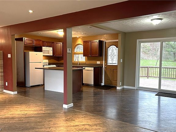 Updated Raised Ranch home is just waiting for its new owner. With so many updates, you do not want to miss this home! The eat-in Kitchen with cherry cabinets and Corian countertops has a large island and is open to the Living Room, with a wood burning stove, creating a very spacious living space. Large windows on the N and S side allow the light to permeate this focal point of the home. The 3 Bedrooms, which were recently carpeted, are all in a separate hallway for privacy with the remodeled full bath. The Master suite has a half bath and a walk-in closet. The Master could also make a great Family Room with a large picture window overlooking the back yard and since the walk-in closet could be the laundry room on the first floor since it is already plumbed. You decide the best use. There is an office is in the lower level and a large Recreation Room with a second Kitchen for entertaining in the unfinished storage area. A sprawling deck overlooking the back yard, great for entertaining. Set back from the road on 1 acre surrounded with trees, this makes a great home.