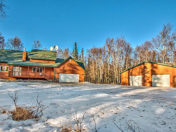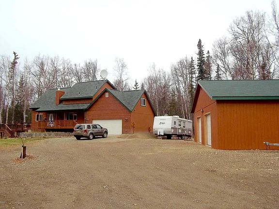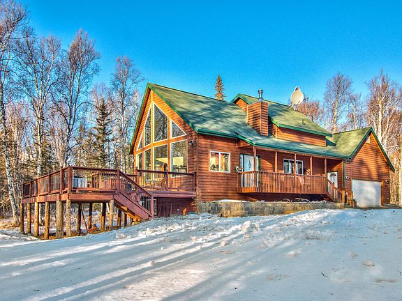 Amazing (and rare) Alaskan lifestyle home opportunity near Hatcher Pass. The chalet style main living area has soaring ceilings with a 'glass wall' of windows that overlooks the immense additional outside living area (the massive, multi level deck). The floor plan itself lends to a comfortable existence with convenience and plenty of extra space. There are mountain views too! See supplement...