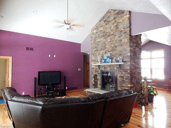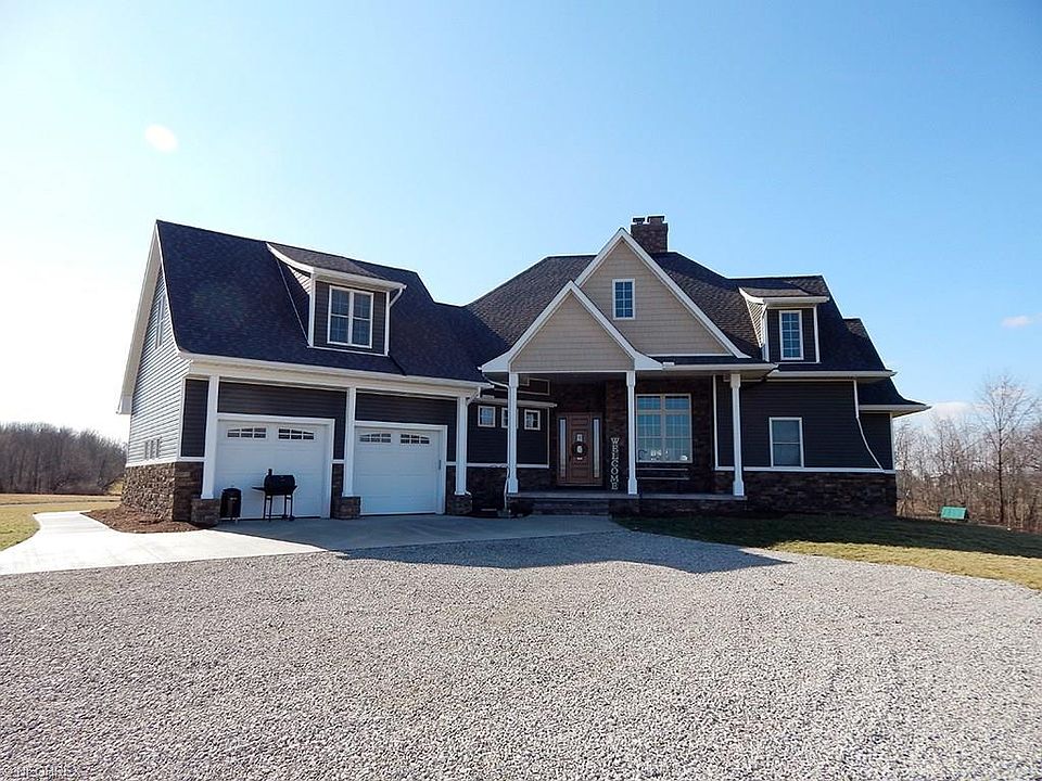 Stunning newer construction nestled on 12+ scenic acres. This awesome craftsman style home features custom amenities thru-out. The spacious open floor plan includes solid 3/4 " Hickory wood floors in the main part of the home. A vaulted Great Room is complimented with a beautiful two sided Rumsford fireplace that can be enjoyed form the Dining Room and the gourmet Kitchen. The Kitchen includes custom hickory cabinets, Corian countertops, large island, breakfast bar, plus stainless steel appliances. The 1st floor Owner's Suite is complete with a glamour Jacuzzi bath and walk-in closet. Bedroom 2 includes a private bath and walk-in closet. Bedrooms 2/3 share a Jack-N-Jill bath. A huge Bonus Room upstairs is perfect for a home theatre area. The walk-out lower level has been plumbed for a full bath. A 105 gallon hot Water Tank. There is a 38x48 insulated finished pole barn w/water and electric, 14' ceiling, 12'6" and 15' wide doors. Excellent access to I76, I71, 224. This is a must see.