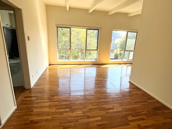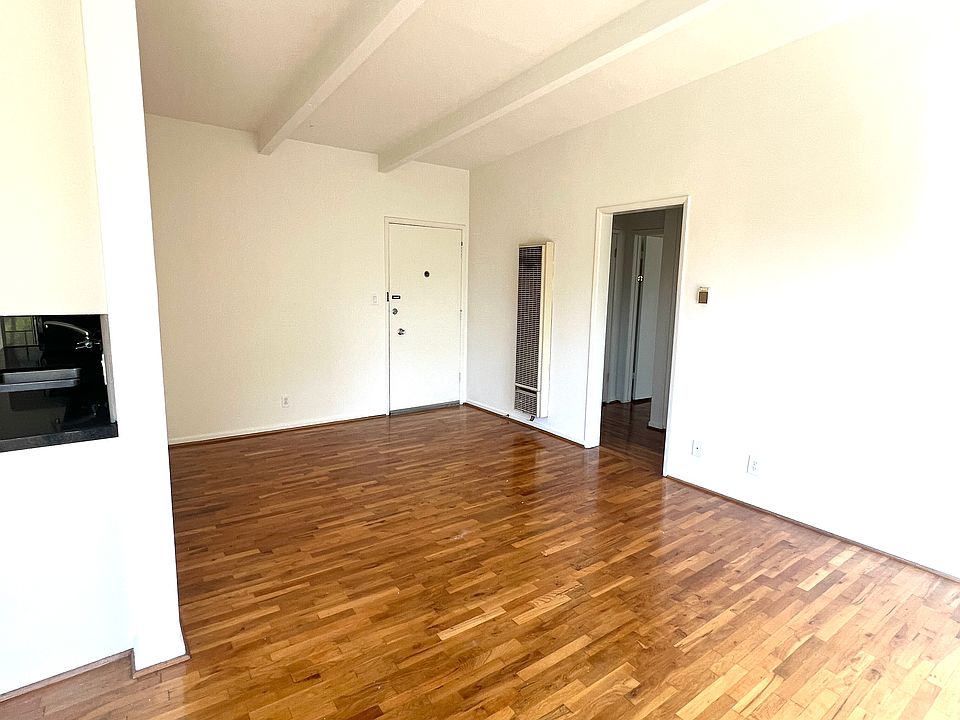Bright clean one bedroom one bath with a lofty feel. High vaulted ceilings, big windows, hardwood floors, and ample storage space are just some of the features of this wonderful space tucked away in the heart of West Hollywood. Fun original tile bathroom.