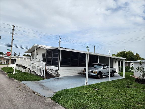 Park City 2/2 corner lot with long carport, screened porch and shed, is a diamond in the rough. Home needs some TLC, great opportunity to improve and add your own personal touches, newer central a/c, ample living area, kitchen and indoor laundry. Nice size screened porch with windows, leads to carport, shed, and backyard. Partially furnished, Double entry doors. Park City is an over 55 community where you own the land, pet friendly, leasing allowed after one year of ownership. Tons of amenities: Community pool, shuffleboard, clubhouse, tennis, library, planned activities. Convenient to shopping, restaurants, highways to Ft Lauderdale and Miami. Low monthly maintenance.