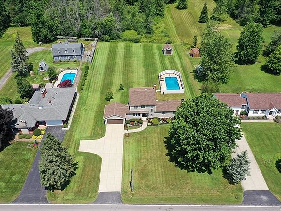 Welcome to 8600 Stahley Road, located on a gorgeous 1 acre lot in top rated Clarence School District! Your backyard is like a private oasis boasting a beautiful deck and patio overlooking your stunning yard inground pool, shed, and no rear neighbors! Walk into the front foyer that leads you to a beautiful living room with hardwood flooring that opens into the dining room. Not one, but 3 sliding doors makes this home full of natural light! Your updated kitchen includes all stainless appliances plus the washer and dryer in the 1st floor laundry room. Two beautifully updated bathrooms, and three great size bedrooms. Recent updates include; vinyl siding, smart trim, patio, deck, pool liner & fence, shed, & more! Stop by the open house Sunday 7/14 from 10am-12pm and see this wonderful home!