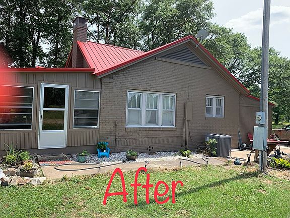 Metal roof 10yrs old., Brand new AC unit outside & inside, all new duct work in attic, outside completely repainted & windows wrapped with brand new siding, inside completely repainted & all light new lighting installed, bathroom has all new plumbing, original hardwood floors, huge walk-in closet in master bedroom
