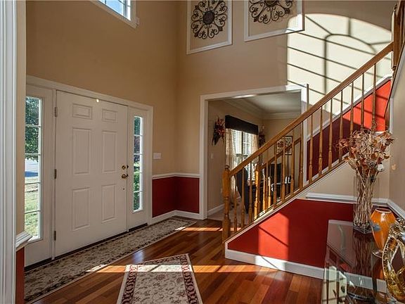 Experience a gorgeous rural setting and custom appointed home in South Fayette's Parkes Farm - one of Pittsburgh's most desired school districts. This 4 bedroom, 3.5 bath, 3-car garage home offers over 100' of rear level yard and large composite deck leading to a paver stone walkway. Walk inside to a 2-story foyer, 9' ceilings, and beautiful, gleaming Brazilian cherry wood flrs. The formal living and dining rms are accented w/crown molding and chair rail throughout. The gourmet kitchen offers dual ovens, a gas cooktop, and extensive prep space on granite countertops. The kitchen flows to an oversized family rm w/an easy-on gas fireplace. A half bath, laundry rm, and lrg study complete the first floor. The second level includes 3 bedrooms, and an Owner's Suite with vaulted ceilings, dual walk-in closets, a jetted spa soaking bath, and oversized glass shower. A lrg finished walk-out basement includes a game rm, full bath, and storage rm. Abundant parking w/3 car grg + wide drive.