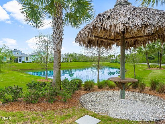 Step into your own Coastal Retreat! A beautiful Florida Cottage, fully furnished, nestled in sought after Latitude Margaritaville Watersound a beautiful 55+ Active Adult community perched along the Intracoastal Waterway, offering residents an unparalleled lifestyle. This RARELY ON THE MARKET in Phase 2, Aloha Cottage plan has panoramic POND and PRESERVE views and the most beautiful sunset views from every room in the home! Highly upgraded with many custom features and just 7 miles from the pristine white sands of Panama City BEACH! Phase 2 cottages are within walking distance to the amenities, like a little cottage island completely surrounded by ponds and preserves! Step in to the covered screened porch with tile floors. A wonderful spot for relaxing and taking in the views! The spacious living room has a vaulted, custom beamed ceiling, open to a gourmet kitchen with a Kitchen Aid appliances, gas range, 42'' cabinets & pantry, quartz countertops and tile backsplash. Separate spacious dining room with vaulted beamed ceiling, wonderful for dinner parties and more! Master bedroom with a a large walk-in closet , large shower & tile floors and double vanities. 2nd bedroom has an adjacent full bath and a wonderful den/study/office space with a wall of custom built-in bookcases. Upgraded laminate, Revwood by Mohawk floors throughout, tile floors in baths. Privacy blinds throughout the home. All custom light fixtures and fans. Custom feature wall in family room. Designer paint throughout home. Fully furnished and a beautiful Golf-Cart included in the purchase, with a full price offer. No detail was spared in the perfect cottage home!