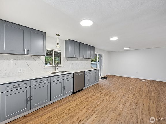 Large corner lot with a tastefully updated 4-bedroom, 2-bath home in desirable Nisqually Pines! This 1,848 sq. ft. home offers a great layout with the primary suite privately situated on one side and three bedrooms on the other. The kitchen has been beautifully remodeled with new cabinets, quartz countertops, and stainless steel appliances. Luxury vinyl plank flooring, fresh paint and new trim along with two mini splits provide comfort and style throughout. The spacious lot features a garage, small shop, and ample room for RV or boat parking, plus mature fruit trees and a thriving grapevine to enjoy. Residents can also take advantage of the community clubhouse, pool, scenic trails, neighborhood parks, and access to the Nisqually River.