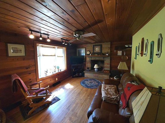 Adorable 2 bedroom log cabin ranch nestled among towering oaks on a rolling double-lot (approx. 1/2 acre). Warm and rustic-style design highlights natural beauty with hardwood floors, knotty wood plank ceilings, wood burning floor to ceiling stone fireplace. Den/Office provides additional living space w/ possible future conversion to a 3rd bedroom. Updated kitchen with new counters and appliances, window box over the sink provides lots of natural sunlight and the new tile floor flows into the dining room with convenient laundry area with new washer and dryer! The huge deck off the dining room expands across the entire back of the home and has newer wrap around railing! Enjoy private, photographic views of nature year round right from the deck. Blocks away from beautiful parks, tennis/basketball courts, beaches and private recreational lake. Newer roof and electrical panel, water heater and remodeled main bathroom. Detached 1 1/2 car gargage plus new storage shed and long driveway with additional gravel parking. Low taxes and great location make this a great place to call home!!