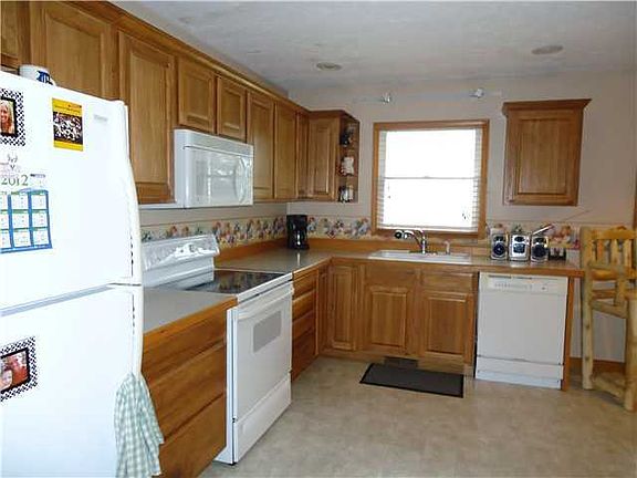 This 3 bedroom ranch was built in 2001, full finished basement with egress windows. Oak kitchen and oak trim throughout, first floor laundry, and all appliances stay. Larger open kitchen, slider to deck overlooking woods and wildlife. Perfect for the first time home buyer or the move to the country. Very well maintained, the pride of ownership really shows. Seller reserves electric fireplace in living room and antenna on house.
