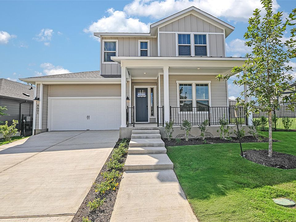 Come visit Easton Park, a community featuring a resort style pool, a fitness center, event space, and miles of beautiful trails. Welcome to the Eckerd floor plan, where you'll be greeted by a lovely front porch that sets the tone for the warm and inviting atmosphere of the home. Upon entering, you'll immediately feel the spaciousness of the two-story layout that effortlessly blends an open concept with a highly function design. As you walk past the flex space, prepare to be captivated by the primary bedroom that boasts a stunning en-suite bathroom complete with a garden tub, a refreshing shower, and a generously sized walk-in closet that's perfect for your storage needs. Ascend the stairs to find two bedrooms and an upstairs loft. If you're looking to maximize space, suit your needs with optional 4th and 5th bedrooms. Whether you're entertaining guests or spending time with family, the Eckerd floorplan offers a versatile living space that adapts to your every need. Move in this Fall!
