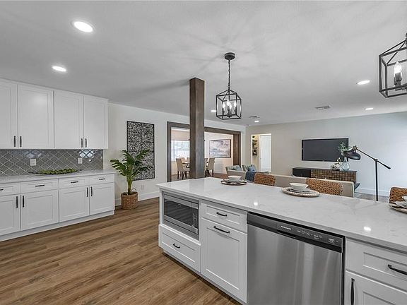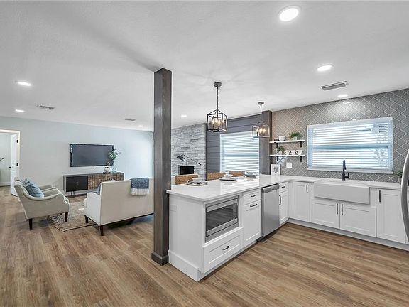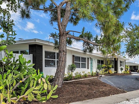 ST. PETE BEACH MID CENTURY MODERN MEETS POTTERY BARN ; Welcome to this custom curated design which has just completed being renovated in gorgeous St. Pete Beach. This home is a tranquil paradise in the middle of this charming, best rated Florida beach community. Positioned perfectly on the north side of St. Pete Beach and across the street from the intercoastal waterway, this is a gem, rarely found updated home and ready for you to move right into today. This home offers 3 bedrooms, 2 full baths as well as an expansive great room which includes the kitchen and family room with an adjacent dining room which seats 8 comfortably. Enjoy a gourmet kitchen complete with a pot filler, new stainless steel appliances, quartz countertops and ample storage for all your smaller appliances/gadgets and tools to be discretely stored when cooking or simply entertaining friends and family. Impressive corner lot with a circular drive as well as an additional driveway with an attached carport. All freshly landscaped with xeriscape and rock as well as fresh sod in the rear, fenced yard. The closet space is such a wonderful feature within this home - large closets in every bedroom and a his and her's walk-in closet in the master suite. The master suite is a private enclave which is separated from the other two bedrooms and is one of the largest found on the beach in a home this size. Updates include the following: Electrical, HVAC ducts, insulation, tankless hot water heater, plumbing in bathrooms, damper and cap for chimney, roof (2017), interior and exterior paint, vinyl privacy fence, all cabinetry, flooring, and plumbing fixtures including lighting. Come check out the #1 rated beach and all the great restaurants, cafes, and bars that make it an amazing place to live, work, and play. 2021-08-24