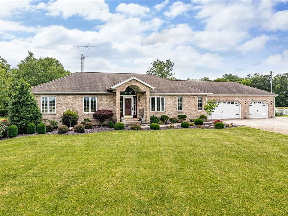 Picture perfect ranch home on 5 acres with 3 car attached garage (22x36) and 1 car detached garage (16x30)! 3 bedrooms & 2 bathrooms on the main floor, with an additional bedroom & full bath in the spacious walkout basement. Large sunroom has a gas log fireplace & wall A/C! This is a spectacular property that you won't want to miss!